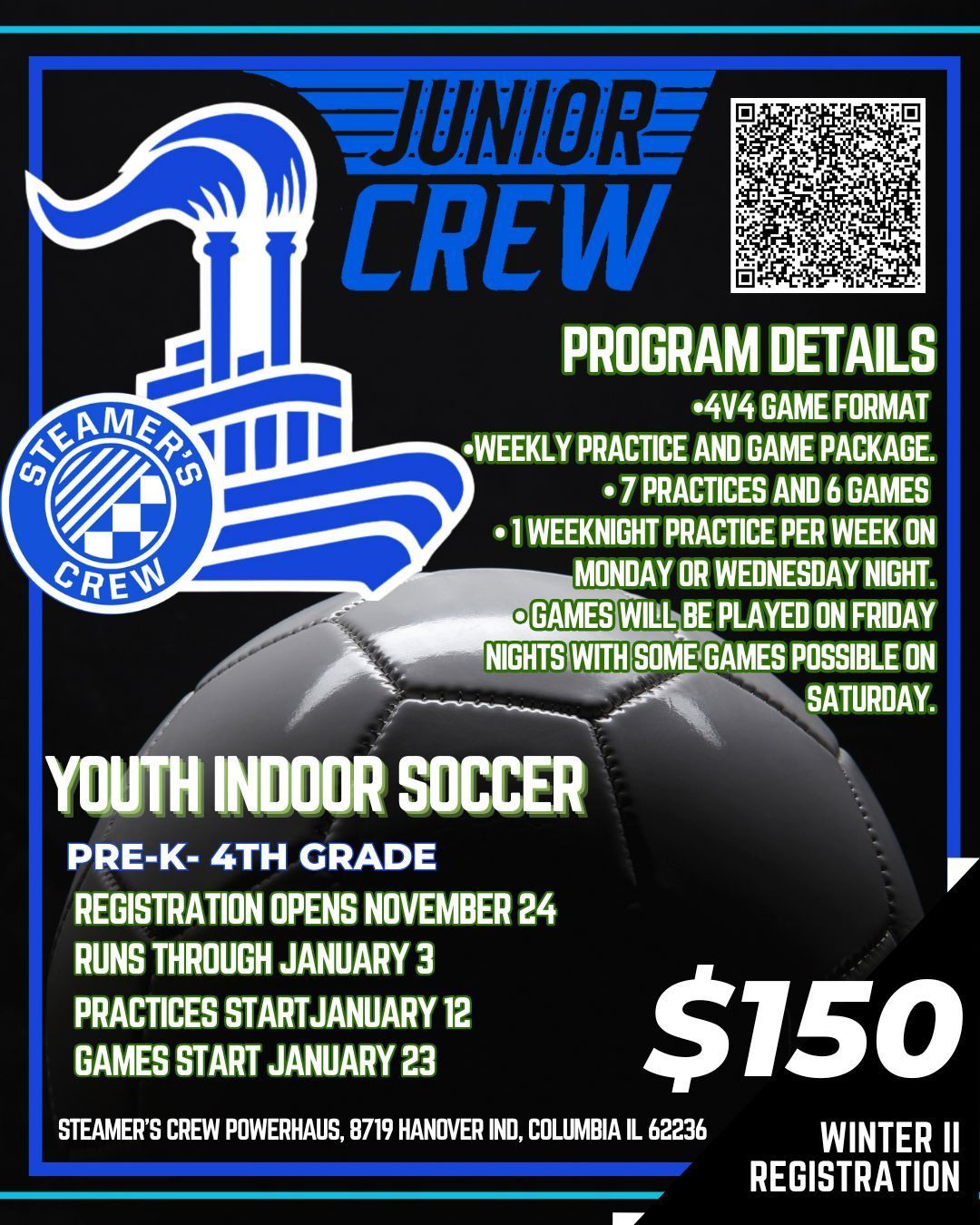 Junior Crew is our recreational soccer league for younger players ages 5 to 7 years. It's a great next step after early development (EDGE) or a welcoming first experience for new players.